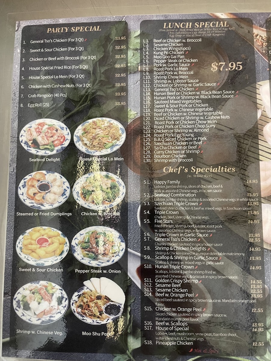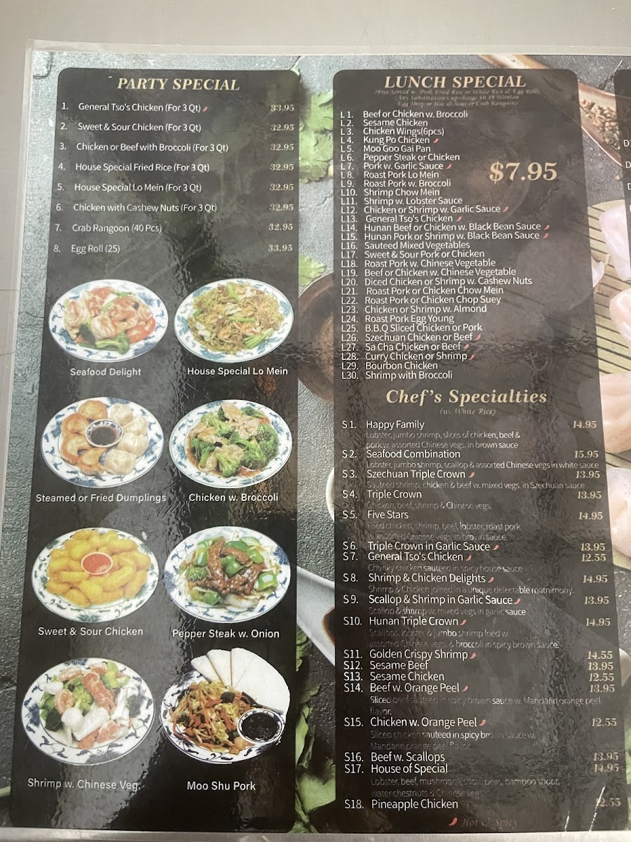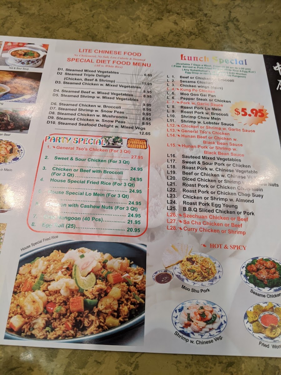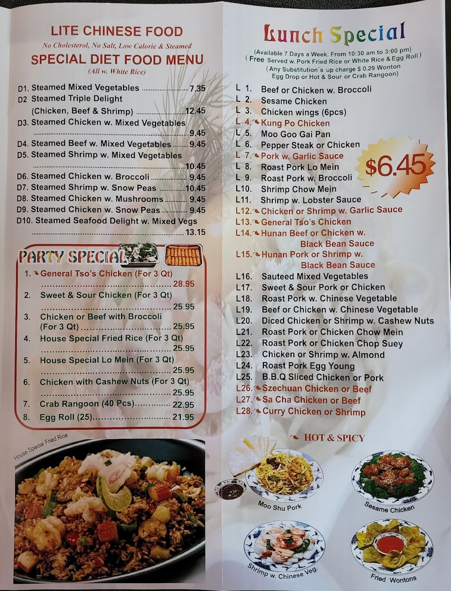 For larger groups, the Party Special options provide generous servings, including dishes like Chicken With Cashew Nuts (for 3 Qt) and House Special Fried Rice (for 3 Qt), making it easy to share a delicious meal with friends or family.