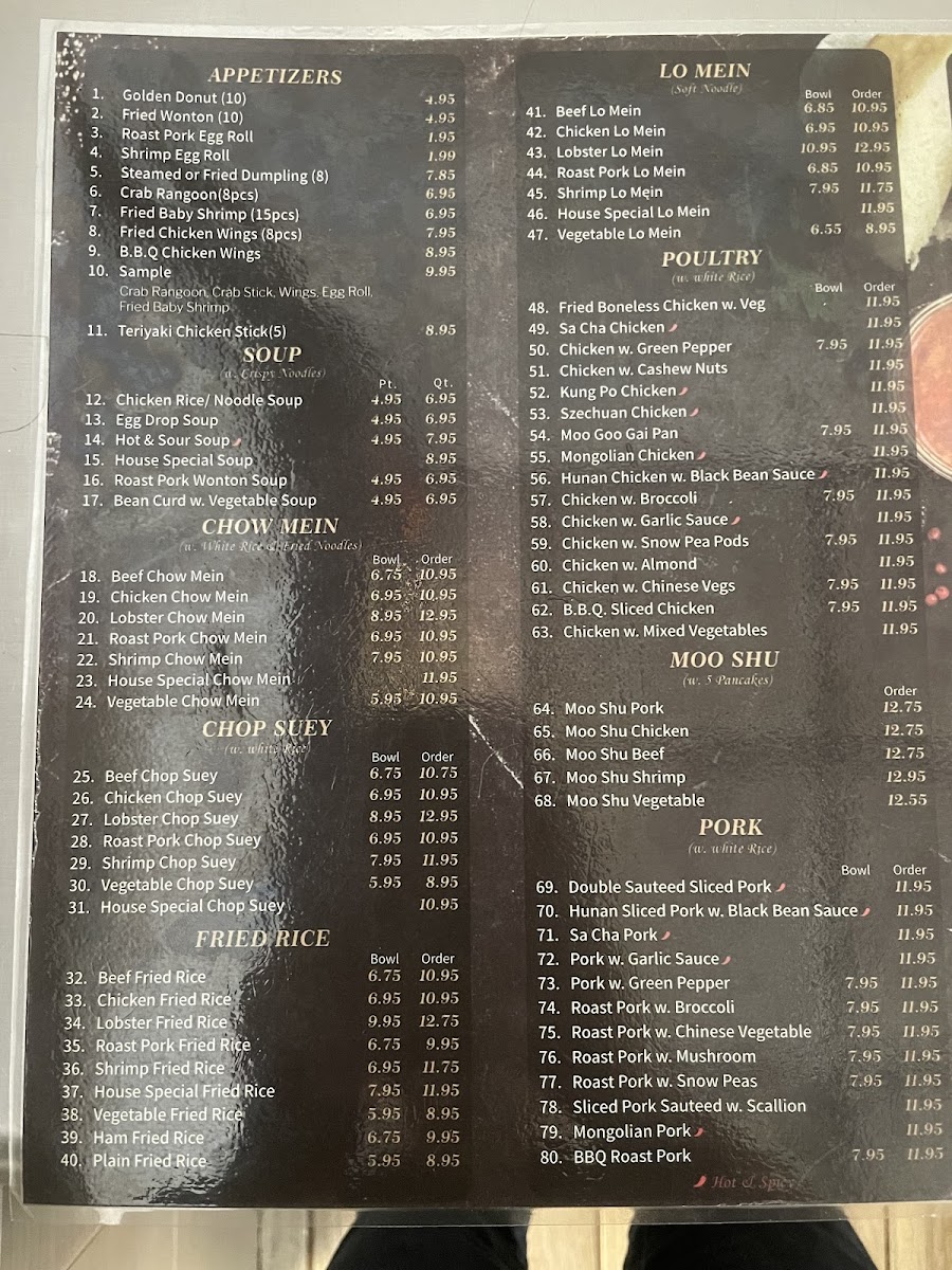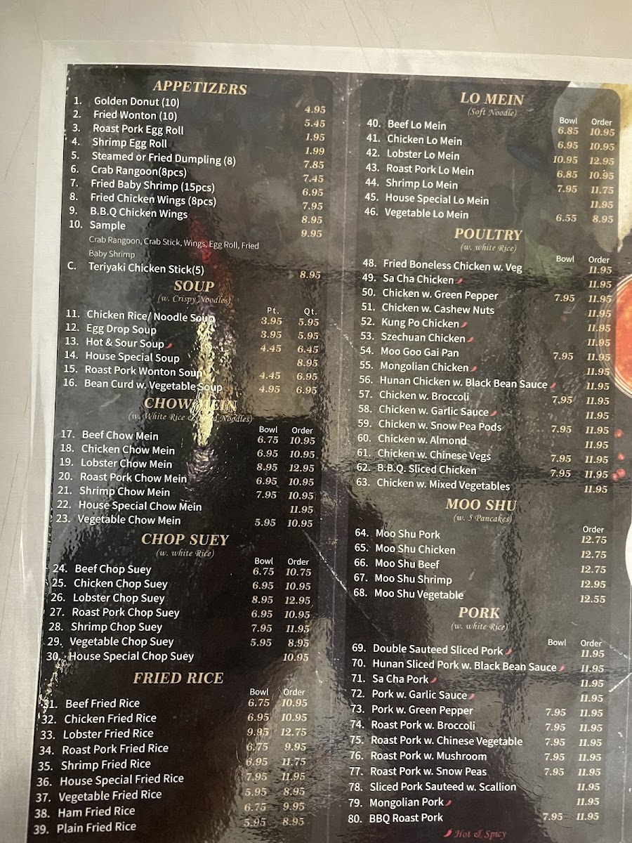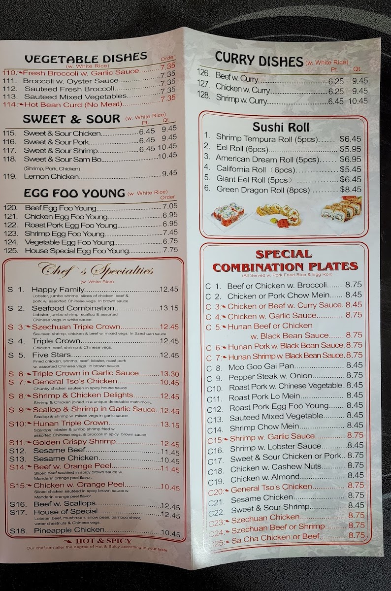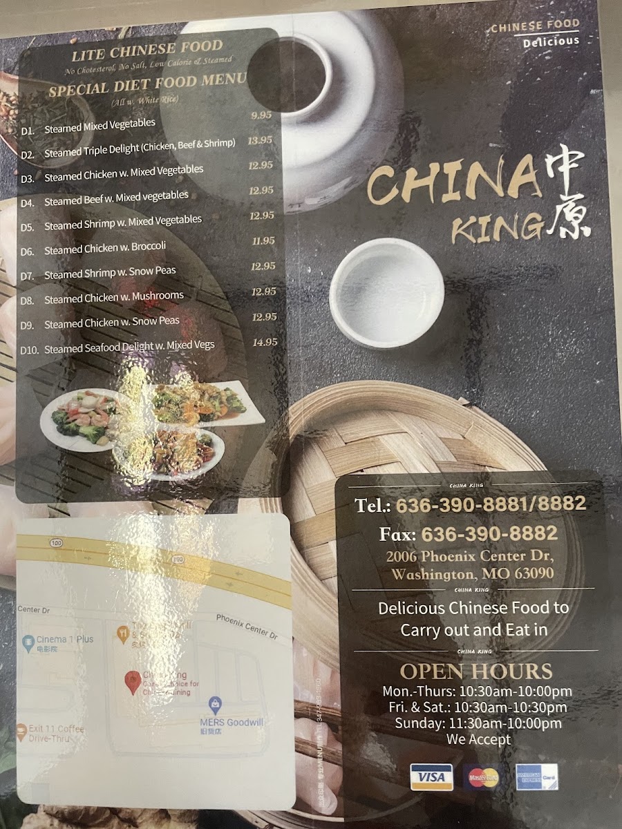 Overall, the China King menu offers a wide variety of Chinese dishes, from comforting soups and hearty entrees to flavorful rice and noodle dishes, all at reasonable prices, making it a great choice for anyone craving authentic Chinese cuisine.